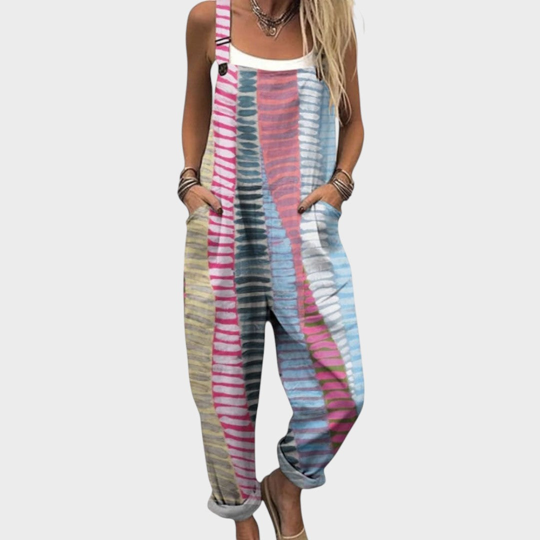 Ten rozkloszowany kombinezon łączy komfort i unikalny design w jednej części garderoby, którą będziesz chciała nosić każdego dnia. Dzięki szerokiemu krojowi, praktycznym kieszeniom i zabawnym detalom, jest idealny na spacery, wyjazdy lub relaksujące chwile w domu.