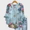 Podkreśl swoją świeżość i kobiecość dzięki tej niebieskiej bluzce ozdobionej bogatymi, kwiatowymi motywami w odcieniach różu, fioletu i bieli. Romantyczne detale na rękawach z falbanami dodają lekkości i elegancji, a swobodny krój sprawia, że ta bluzka jest idealnym wyborem na co dzień oraz na specjalne okazje.