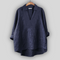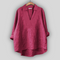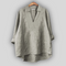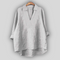 Elegancka bluzka lniana, która emanuje minimalistyczną elegancją i ponadczasowym stylem. Głębokie dekolt w kształcie litery V z eleganckim kołnierzykiem nadaje nowoczesny fason, a luźny krój zapewnia wygodę i swobodę ruchów. Asymetryczne wykończenie z dłuższym tyłem dopełnia elegancką estetykę.
