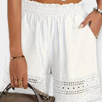Przezroczyste i kobiece, te letnie szorty łączą romantyczne koronkowe detale z praktycznością kieszeni. Ich lekka linia oraz wyjątkowa tekstura sprawiają, że są idealne na spacery, wakacje i relaksujące letnie chwile.