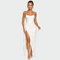 Elegancka biała sukienka o dopasowanym kroju, która podkreśla kobiecość swoją prostotą i wyrafinowaniem. Posiada cienkie ramiączka, przylegający gorset oraz głębokie rozcięcie z boku, dodające dynamiki i uroku. Długość maxi sprawia, że jest idealna na wieczorne wyjścia, oficjalne wydarzenia i wyjątkowe okazje.