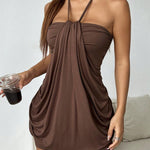 - Czekoladowa mini sukienka z wiązaniem na szyi