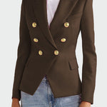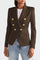 Imponująca marynarka o kroju, który podkreśla sylwetkę i akcentuje styl. Posiada elegancki klap, podwójne zapięcie z przodu na guziki oraz dwie boczne kieszenie z patkami. Jej ponadczasowy design sprawia, że jest idealna zarówno na biznesowe okazje, jak i wieczorne wyjścia, zapewniając pewność siebie i wyrafinowanie w każdej sytuacji.