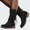 Damskie skórzane botki w szarym odcieniu z vintage estetyką i charakterem ręcznego wykonania. Posiadają sznurowanie dla wygodnego dopasowania, metalowe detale w górnej części oraz niski drewniany obcas, który zapewnia komfort przez cały dzień. Delikatnie postarzany design nadaje im unikalny styl, wyróżniający się w każdej casualowej lub boho stylizacji.