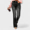 Dzięki rozszerzanemu krojowi i ciemnemu odcieniowi, te jeansy są synonimem elegancji i stylu. Dopasowana linia w okolicach ud z rozcięciem na końcu nogawek optycznie wydłuża nogi, podkreślając krągłości z wyrafinowaniem. Uniwersalny element garderoby, który łatwo przechodzi z casualowych do bardziej wyrafinowanych stylizacji — idealny dla tych, którzy szukają nowoczesnych i ponadczasowych jeansów.