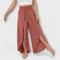 Z płynnym krojem i rozcięciami przypominającymi otulającą spódnicę, te spodnie są idealne dla osób poszukujących swobody, świeżości i stylu w jednym. Lekka tkanina elegancko podąża za ruchem ciała, a wysoki stan podkreśla sylwetkę. To doskonały wybór na gorące dni i codzienne stylizacje z nutą wyrafinowania.