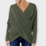 ✔️ Elegancki dekolt w serek: Nowoczesny, zakładany dekolt w serek i asymetryczny dół nadają temu swetrowi wyjątkowego charakteru.