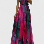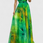 - Długa sukienka z szyfonu z kwiatowym wzorem inspirowanym romantyzmem