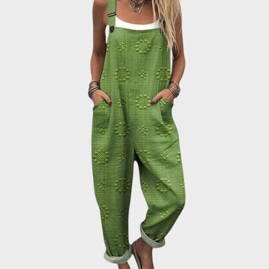 Ten lekki kombinezon łączy komfort oraz unikalny design w jednym elemencie garderoby, który pokochasz nosić każdego dnia. Z szerokim fasonem, praktycznymi kieszeniami i zabawnymi detalami jest idealny na spacery, wyjazdy lub relaksujące chwile w domu.