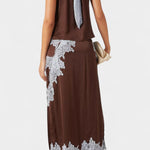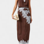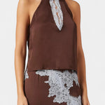 Wyrafinowana propozycja, która łączy zmysłowość i nowoczesność. Dragica zestawia dopasowany top z pasującą spódnicą, oba zaakcentowane kontrastującymi panelami z koronki, które dodają tekstury i kobiecości. Balans między odcieniami tworzy wizualną głębię, podczas gdy przylegający fason elegancko podkreśla sylwetkę. Uniwersalny wybór, który świetnie sprawdzi się zarówno w ciągu dnia, jak i wieczorem, zapewniając kuszący wygląd.