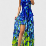 Rzeźbiarska obecność z romantycznym akcentem. Sukienka Zrinka łączy miękkie warstwy falban z bocznym rozcięciem i delikatnym gradientem kolorów, tworząc projekt, który elegancko opływa sylwetkę oraz wyróżnia się bez wysiłku. Jej bezrękawowa konstrukcja i długość do kostek czynią ją idealnym wyborem na letnie wydarzenia pełne stylu.