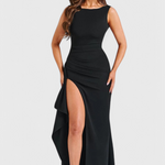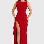 Stworzona, by zachwycać, Suknia Wieczorowa Ivana to prawdziwa definicja wyszukanej elegancji. Dzięki dopasowanemu krojowi, luksusowemu satynowemu wykończeniu oraz efektownemu, odkrytemu tyłowi, ta suknia o pełnej długości to doskonały wybór na wieczorne wyjście. Wysokie rozcięcie dodaje ruchu i atrakcyjności, czyniąc ją idealną na gale, oficjalne kolacje oraz chwile na czerwonym dywanie.