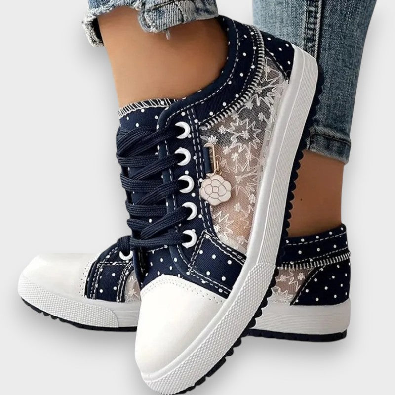 Te buty to perfekcyjne połączenie nieformalnego stylu i kobiecości. Dzięki detalom z przezroczystej koronki i subtelnym ozdobom zamieniają każdą bazową stylizację w czarujący i oryginalny zestaw. Idealne dla tych, którzy szukają lekkości, stylu i komfortu w jednej parze. Prawdziwa przyjemność dla stóp!
