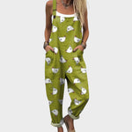 Ten luźny kombinezon łączy komfort i unikalny design w jednym elemencie garderoby, który pokochasz nosić każdego dnia. Dzięki szerokiemu krojowi, praktycznym kieszeniom i zabawnym detalom idealnie sprawdzi się na spacery, wycieczki lub relaksujące chwile w domu.