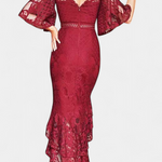 • Spódnica syrena z wysokim i niskim rozcięciem oraz falbanami, emanująca wyrafinowaniem