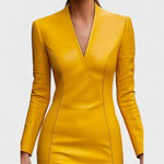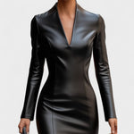 This slim-fit faux leather dress is the perfect choice for women who want to highlight their confidence and sophistication. The modern cut hugs the body's contours, accentuating your figure, while the high-shine material gives a bold and luxurious look. Ideal for evenings out, special occasions, or whenever you want to make a strong impression.