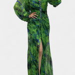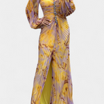 Maxi sukienka Леона z plisowaniem, długimi rękawami i wibrującymi wzorami