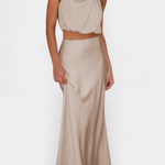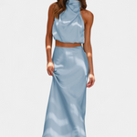 Jasny i zapadający w pamięć, ten zestaw ze spódnicą został zaprojektowany, aby się wyróżniać dzięki drapowanemu topowi z wycięciem typu halter, delikatnym detalom i sylwetce, która elegancko się porusza. Zapewnia lekkie i wyrafinowane uczucie, które doskonale podąża za Twoim ruchem.