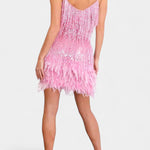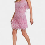 Figlarny i wyrafinowany model zaprojektowany, by przyciągać spojrzenia. Miriana łączy minifason, który z wdziękiem podkreśla kształty, z piórkowymi akcentami dodającymi ruchu i szykownego wyglądu. Uroczy projekt, który uświetni każdą okazję — od wieczornych wyjść po specjalne wydarzenia — pełen uroku łączącego nowoczesność i blask.