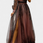 • Boczne rozcięcie i zwiewna spódnica, które dodają zmysłowości i wyrafinowania