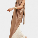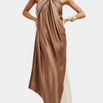 Zaprojektowana z połączeniem zmysłowości i nowoczesności, sukienka Petra wyróżnia się halterowym dekoltem i całkowicie odkrytymi plecami. Jej płynna sylwetka, w połączeniu z grą bloków kolorystycznych, tworzy eleganckie i awangardowe wrażenie wizualne. Idealna dla tych, którzy chcą zabłysnąć pewnością siebie na każdym wyjątkowym wydarzeniu.