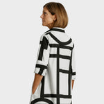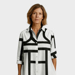 Highlight your style with this striking dress featuring a geometric pattern. The combination of the classic shirt style and contemporary design makes it the perfect choice for women who want to merge elegance and comfort. The loose fit allows for freedom of movement, while the impressive pattern adds a touch of artistic and urban charm.