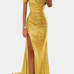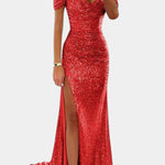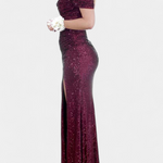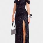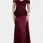 Urocza sylwetka stworzona, by błyszczeć podczas niezapomnianych nocy. Renata łączy drapowany, bezramiączkowy dekolt z marszczonym gorsetem podkreślającym figurę, a wysokie rozcięcie na udzie dodaje odważnego charakteru. Jej krój typu syrenka z delikatnym trenem wprowadza dramatyzm i elegancję, czyniąc ją idealnym wyborem na gale i formalne uroczystości.