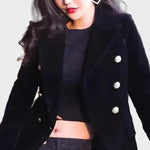 Elegancka marynarka o ponadczasowym kroju z podwójnym zapięciem na guziki, która podkreśla sylwetkę. Jej struktura nadaje profesjonalny i wyrafinowany charakter, a jednocześnie można ją swobodnie nosić zarówno na co dzień, jak i na wieczorne okazje. Minimalistyczny design czyni ją podstawowym elementem każdej garderoby.