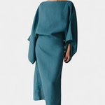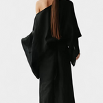 Filipa ucieleśnia swobodną elegancję inspirowaną Japonią i współczesną estetyką. Jej kimono-sylwetka, wykonana z lekkiej mieszanki lnu i bawełny, otula ciało organiczną świeżością i strukturą. Szerokie rękawy, zakładany dekolt oraz pas z tej samej tkaniny definiują tę płynną, uniwersalną i naturalnie wyrafinowaną kreację.