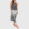 Ta maxi sukienka oferuje idealne połączenie prostoty i nowoczesnego stylu. Bez rękawów i o prostym fasonie zapewnia lekkość i wygodę, a efekt cieniowania nadaje jej wizualnie ciekawy i elegancki wygląd. Idealna na letnie dni, spacery nad morzem lub na codzienne, nieformalne stylizacje miejskie – sukienka, którą nosi się z łatwością i elegancją.