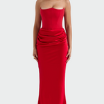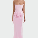 Imponująca i zmysłowa sukienka z gorsetem bez ramiączek oraz dopasowanym krojem, który podkreśla sylwetkę. Elegancki, marszczony pasek w talii nadaje kobiecości i wyjątkowego charakteru, a maksymalna długość zapewnia ponadczasową elegancję. Idealna na uroczyste wieczory i olśniewające wyjścia.