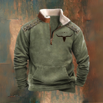 Ta bluza polarowa z półzamkiem została stworzona na chłodny sezon: wysoki kołnierz w stylu sherpa chroniący szyję, rękawy z nadrukiem w klimacie Dzikiego Zachodu oraz praktyczna kieszeń kangurka. Swobodny krój łatwo założysz na T-shirt lub koszulę — idealny na chłodne dni i wieczory na zewnątrz.