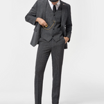 Darby 3-Częściowy Garnitur emanuje wyrafinowaniem i klasą - idealny dla mężczyzn, którzy pragną połączyć styl z komfortem. Czy to na formalne okazje, czy spotkania biznesowe, ten garnitur oferuje ponadczasowy wygląd z nowoczesnym akcentem.