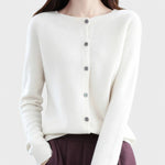 Este cardigan feminino em tom rosa vibrante combina suavidade, elegância e estilo intemporal. Confeccionado em malha com toque de caxemira, oferece um caimento leve e confortável, ideal para os dias mais frescos. Com botões frontais delicados e design minimalista, adapta-se facilmente a looks casuais ou mais sofisticados. O detalhe do cinto com fivela dourada adiciona um toque moderno e refinado ao conjunto.