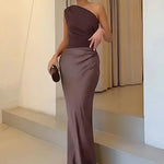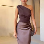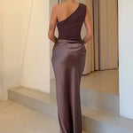Jutrzenka – Satynowa sukienka maxi na jedno ramię