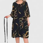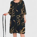 - Design z Paskami na Rękawach: Figlarne paski na rękawach dodają zabawy tej eleganckiej sukience.