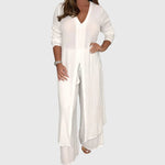 Bezproblemowy Styl: Długa bluzka dodaje wyrafinowania, podczas gdy przewiewne spodnie zapewniają maksymalną swobodę ruchów.