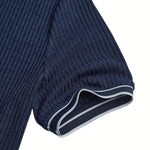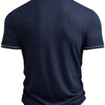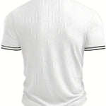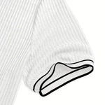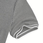Dzięki pionowej prążkowanej strukturze materiału koszulka subtelnie podkreśla ramiona i klatkę piersiową, dając wrażenie atletycznej budowy. To detal, który robi różnicę w każdym spojrzeniu.