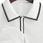 Kontrastowy biały kołnierzyk i rękawy nadają koszulce lekkości i wyrafinowania. Od razu wprowadzasz do swojego stylu nutę francuskiej riwiery nawet jeśli jesteś w centrum miasta.