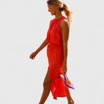 - Nowoczesna letnia elegancja – Wysoki dekolt i płynne linie tworzą stylową i nowoczesną sylwetkę.