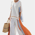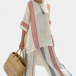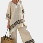 • Bezwysiłkowy Styl: Ten dwuczęściowy zestaw łączy stylowy design z paskowanymi detalami, tworząc wyrafinowany wygląd, który pasuje na każdą okazję.